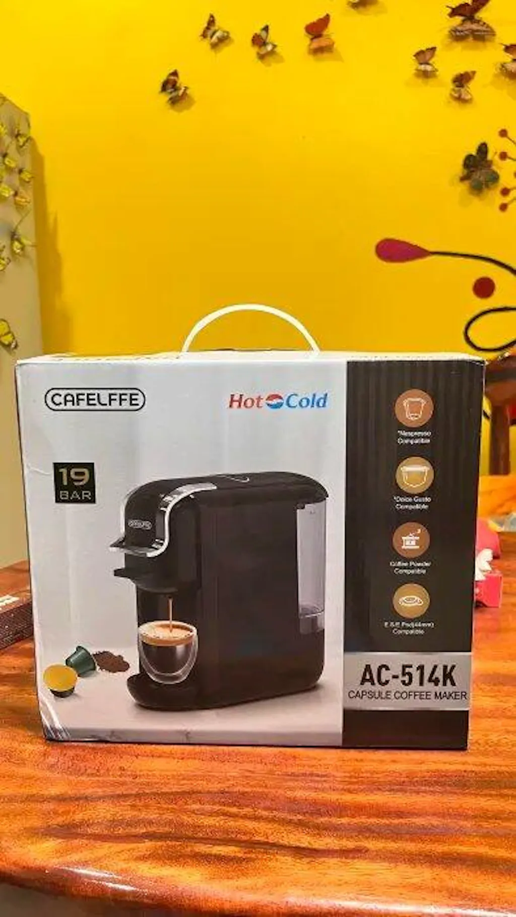 Very fast shipping. Packaged in a double-layered box. All items were present. Includes a multi-language manual, including Thai. The machine is small, compact, and cute. Makes nice, creamy coffee. I like that it comes with adapters for brewing different types of coffee.