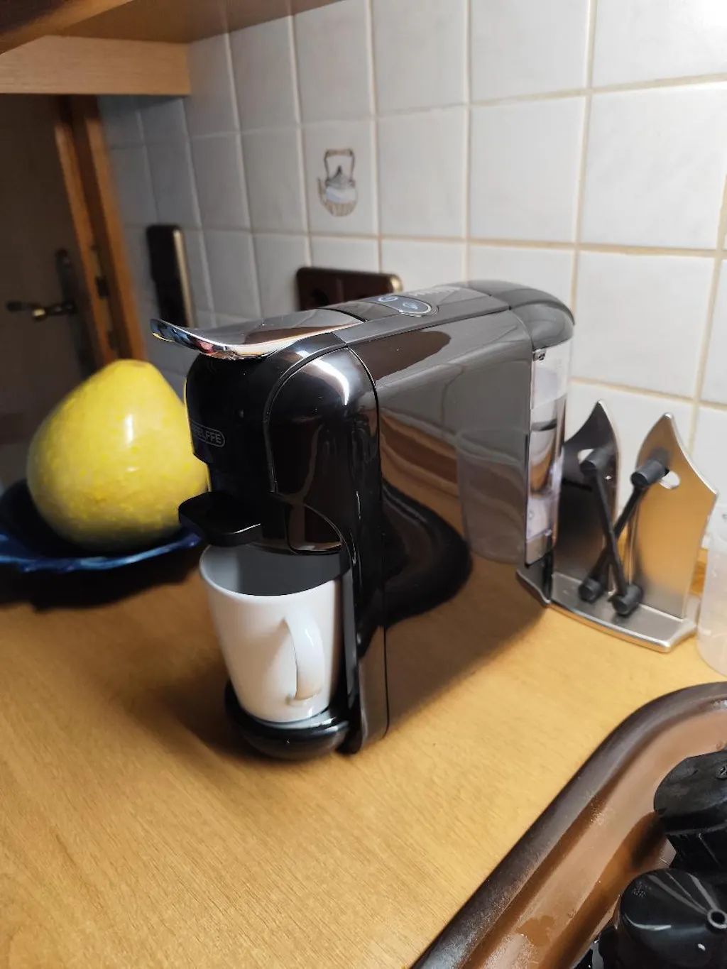 It works fine, the coffee tastes good, and the machine is cute and small. It feels like I always have to add more water... but unfortunately, it doesn't accept Cafissimo capsules, which is a real shame. Oh well, I can manage.